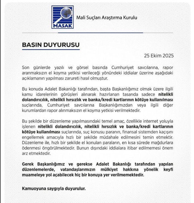 MASAK, savcılara verilmek istenen yetkinin sınırlı kapsamda olduğunu belirtirken, İletişim Başkanlığı ise haberlerin uydurma olduğunu açıkladı.