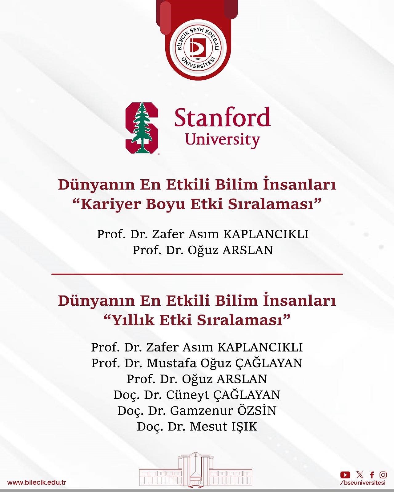 2025 yılı listesinde Bilecik Şeyh Edebali Üniversitesinden 6 akademisyen, iki farklı kategoride listeye girmeye hak kazandı: