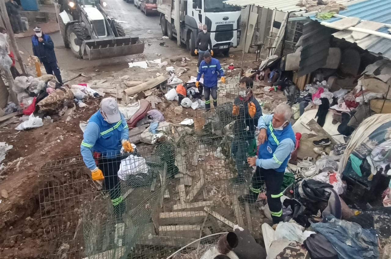 Akdeniz Belediyesinin açıklamasına göre, Zabıta Müdürlüğü ekipleri, vatandaşların kötü koku, haşere oluşumu ve görüntü kirliliği şikayetleri üzerine Müfide İlhan Mahallesi’ndeki evde inceleme yaptı.